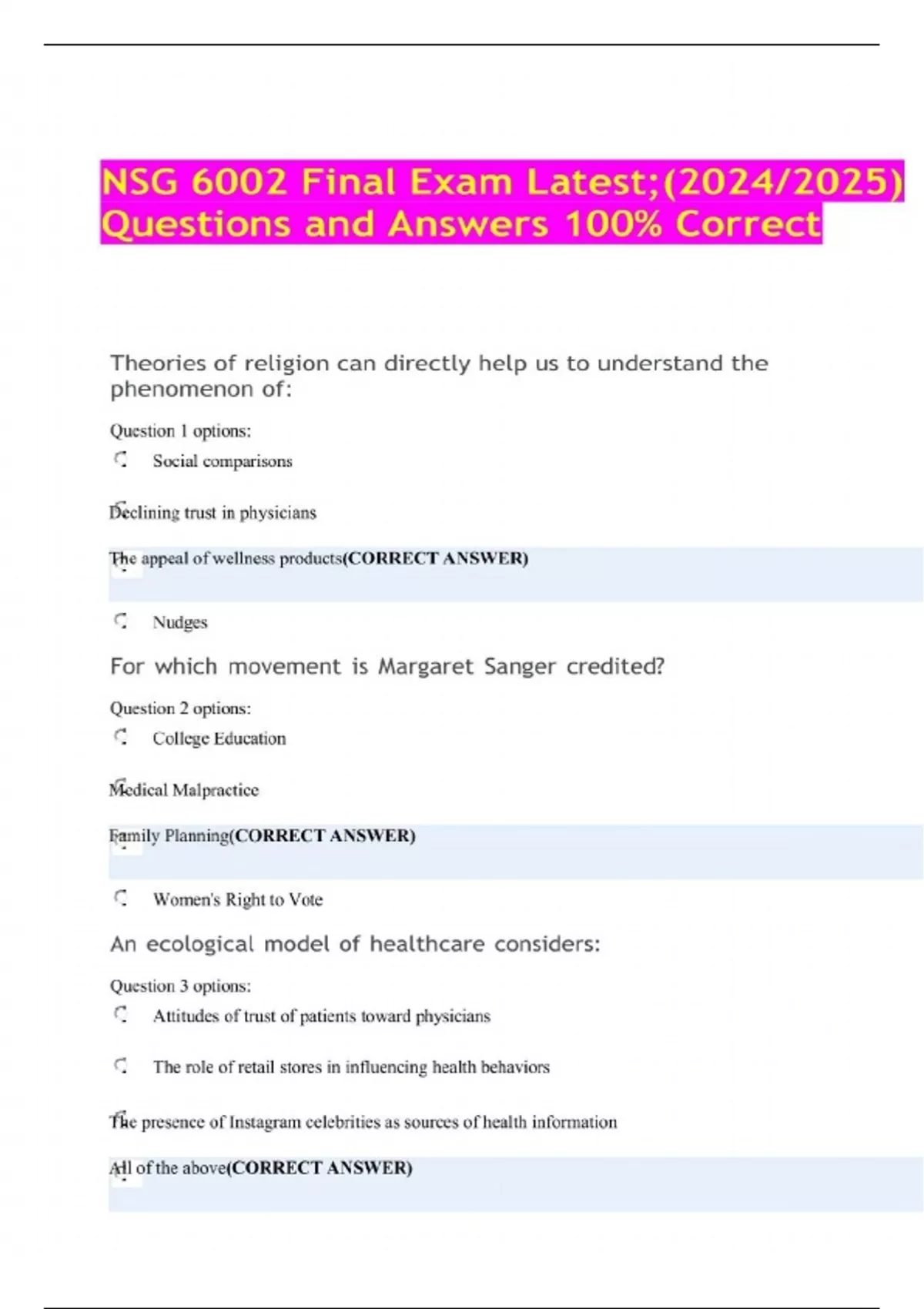 nsg 6002 final exam latest questions a