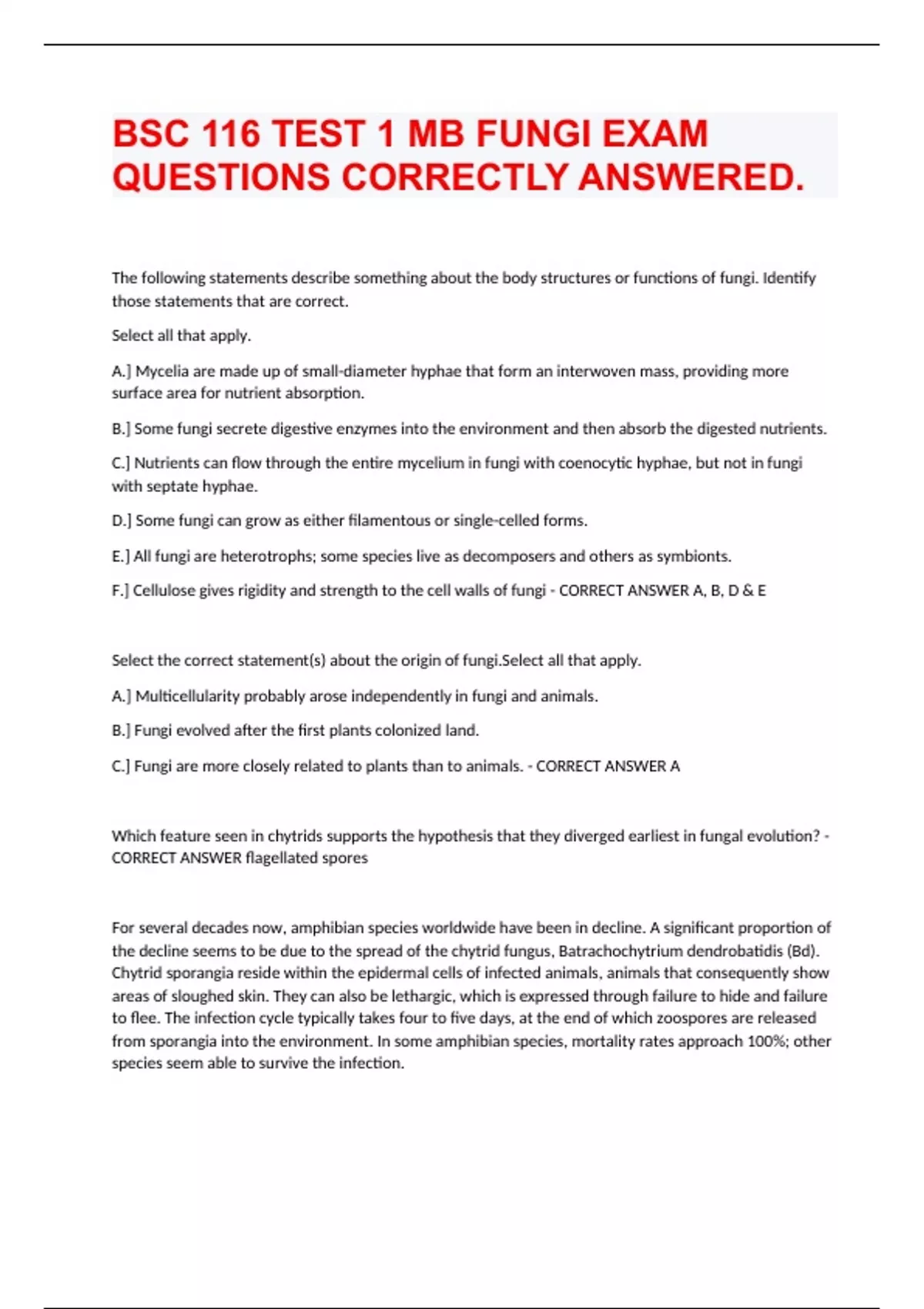 F.] Cellulose gives rigidity and strength to the cell walls of fungi - CORRECT ANSWER A, B, D & E