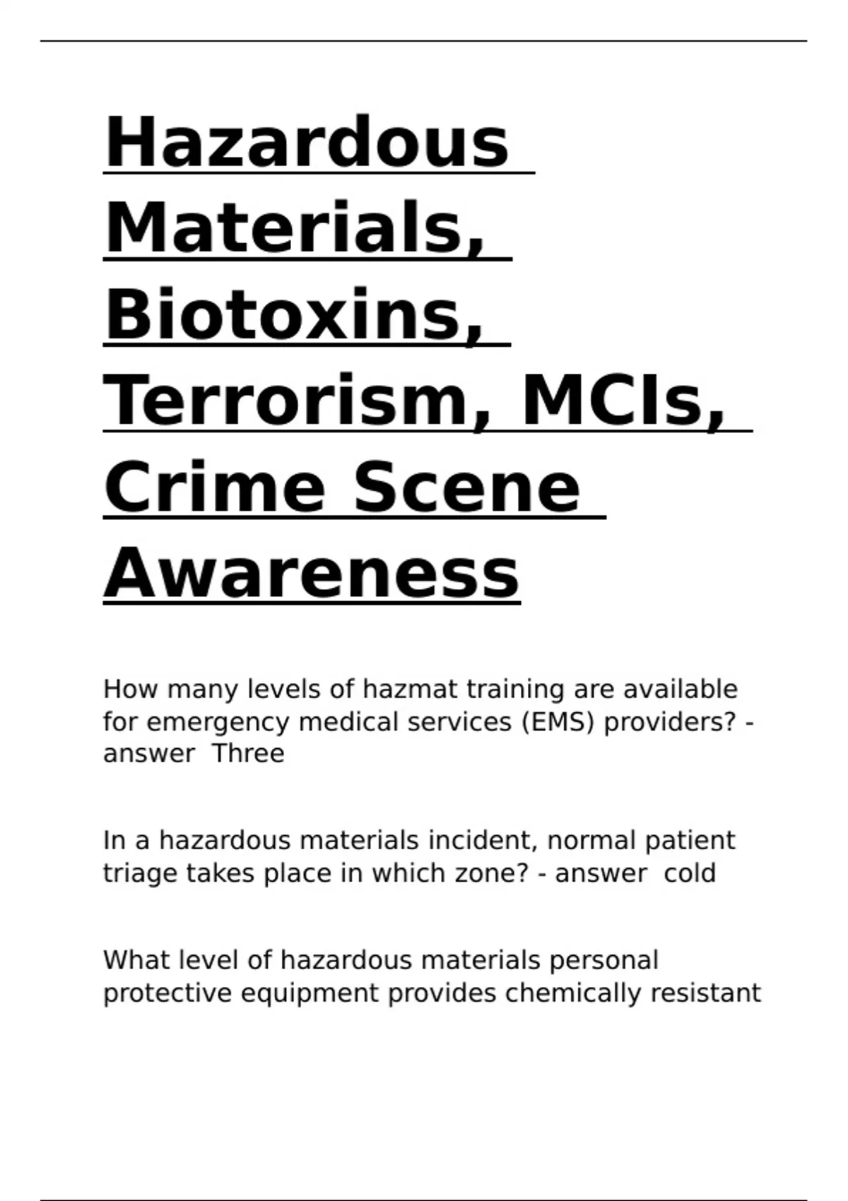level" of hazmat training for emergency medical