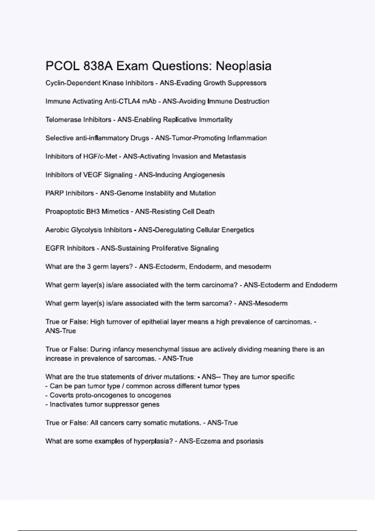 PCOL 838A Exam Questions- Neoplasia