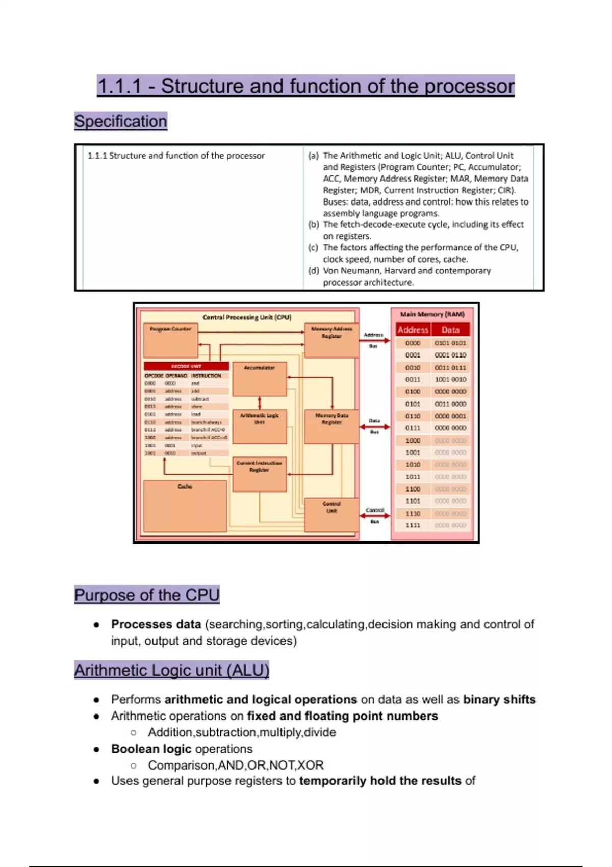 1.1.1 - Structure and function of the processor