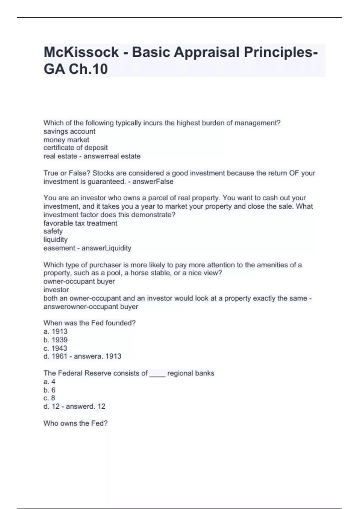 McKissock - Basic Appraisal Principles- GA Ch.10 Questions and Answers