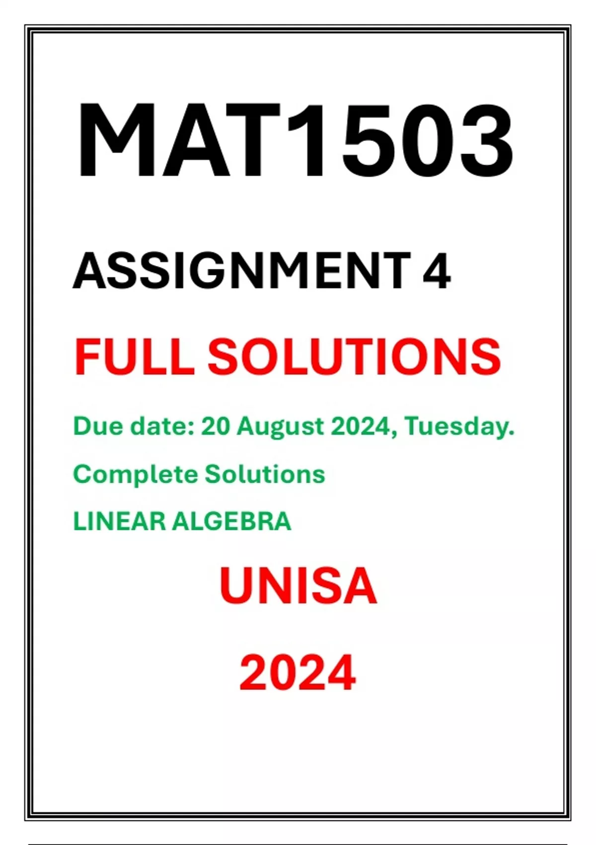 - MAT1503 Assignment 4 Complete Solutions UNISA 2024