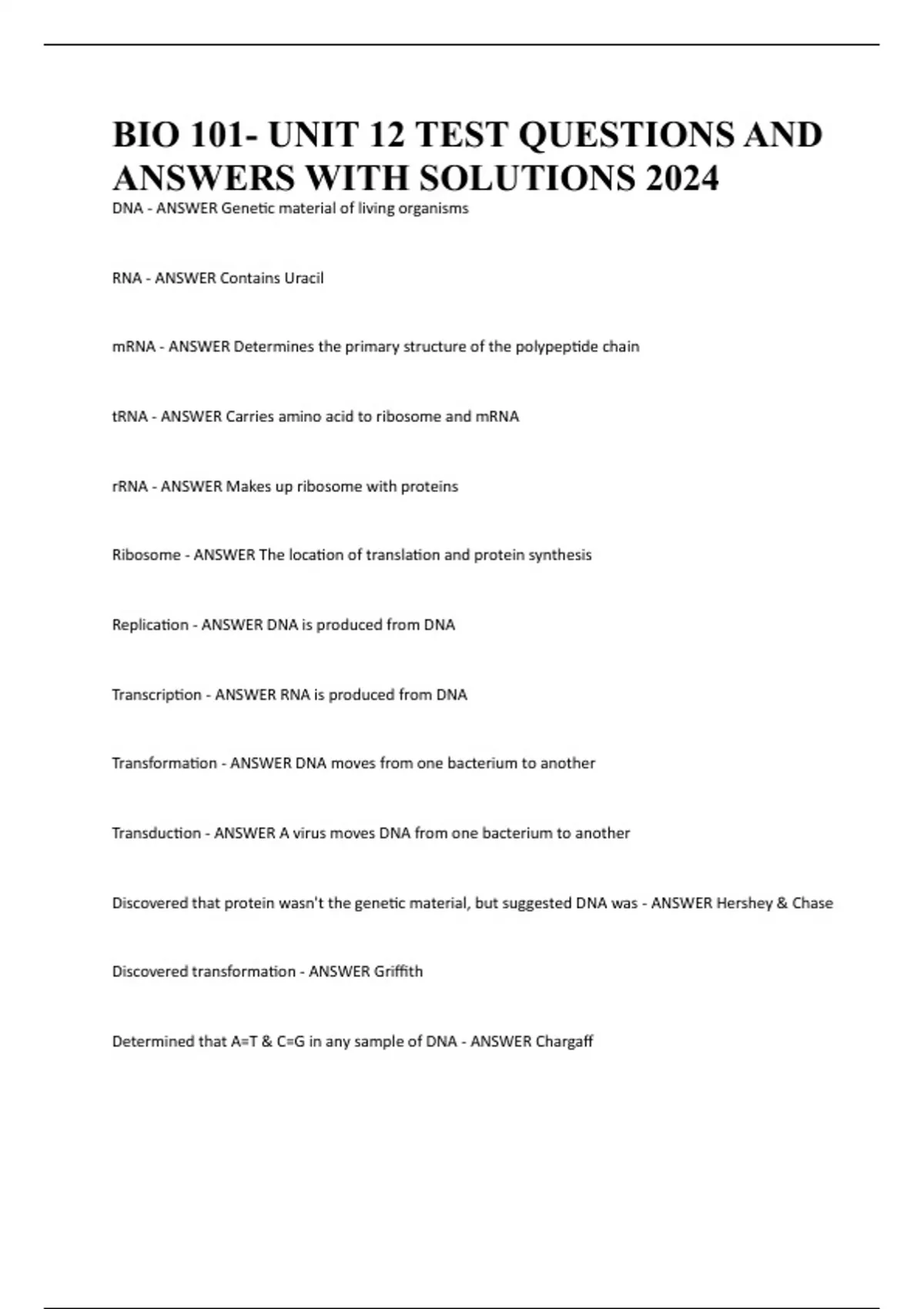 RNA - ANSWER Contains Uracil