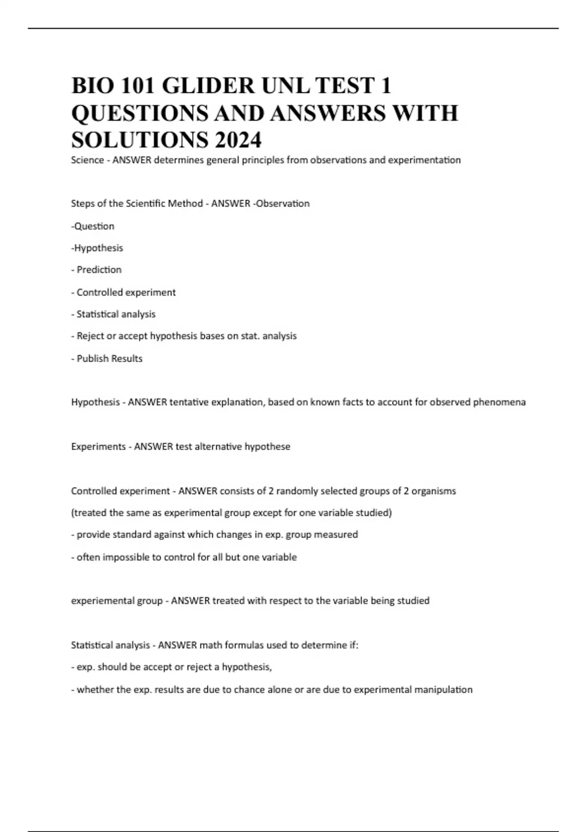Hypothesis - ANSWER tentative explanation, based on known facts to account for observed phenomena
