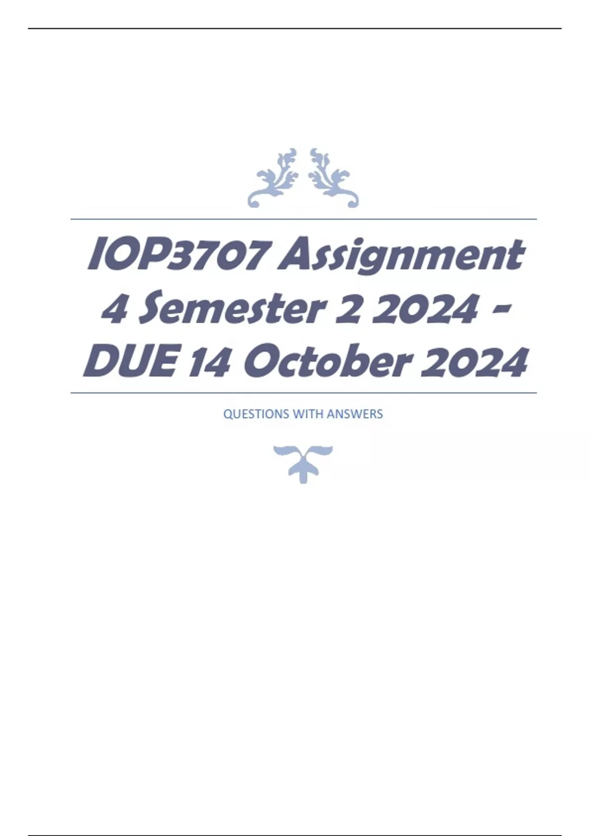 ,IOP3707 Assignment 4 Semester 2 2024 - DUE 14 October 2024