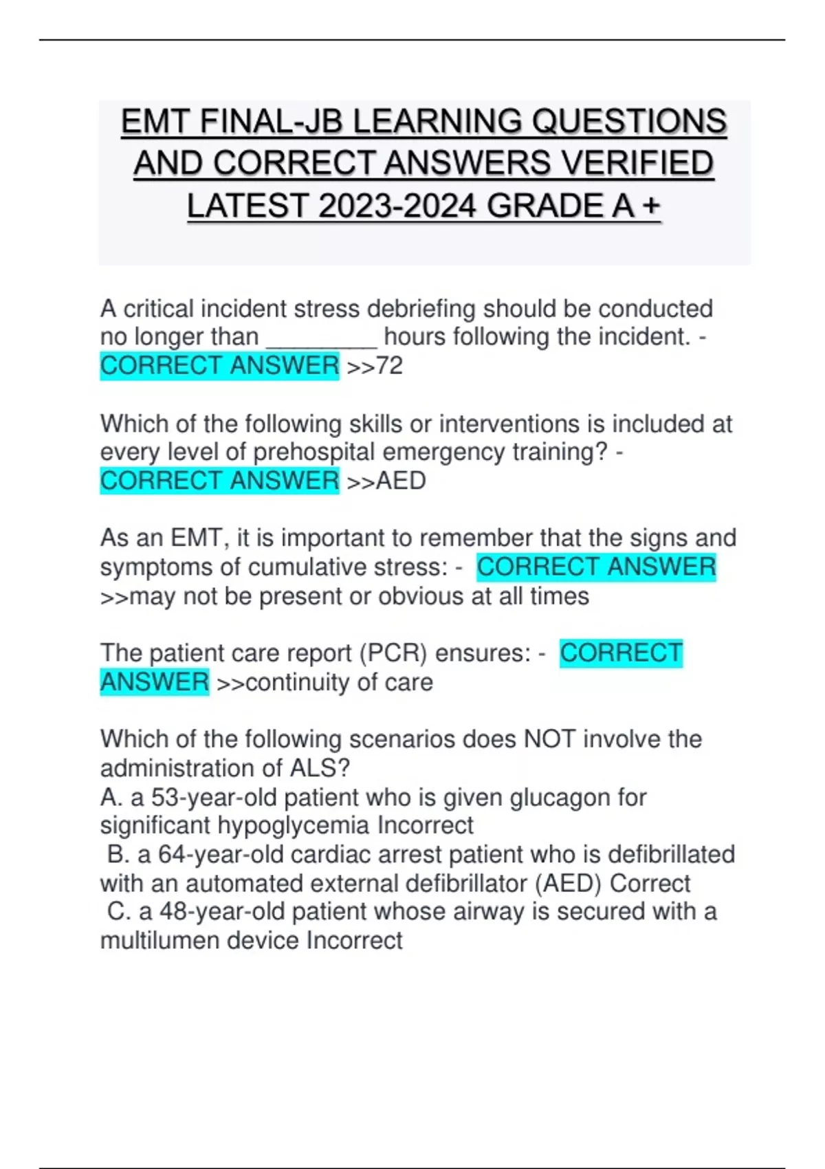 LATEST 2023-2024 GRADE A +