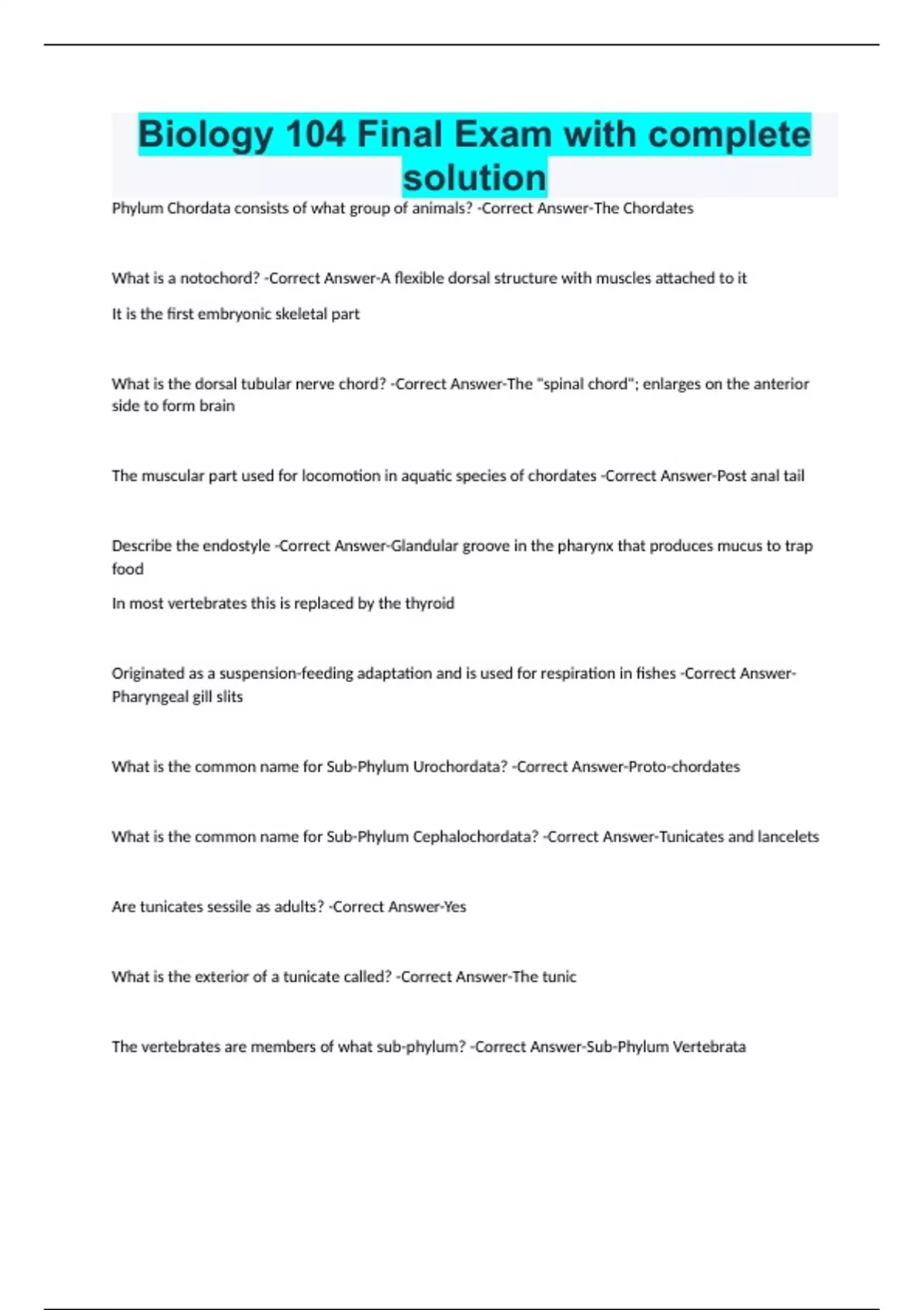 Phylum Chordata consists of what group of animals? -Correct Answer-The Chordates