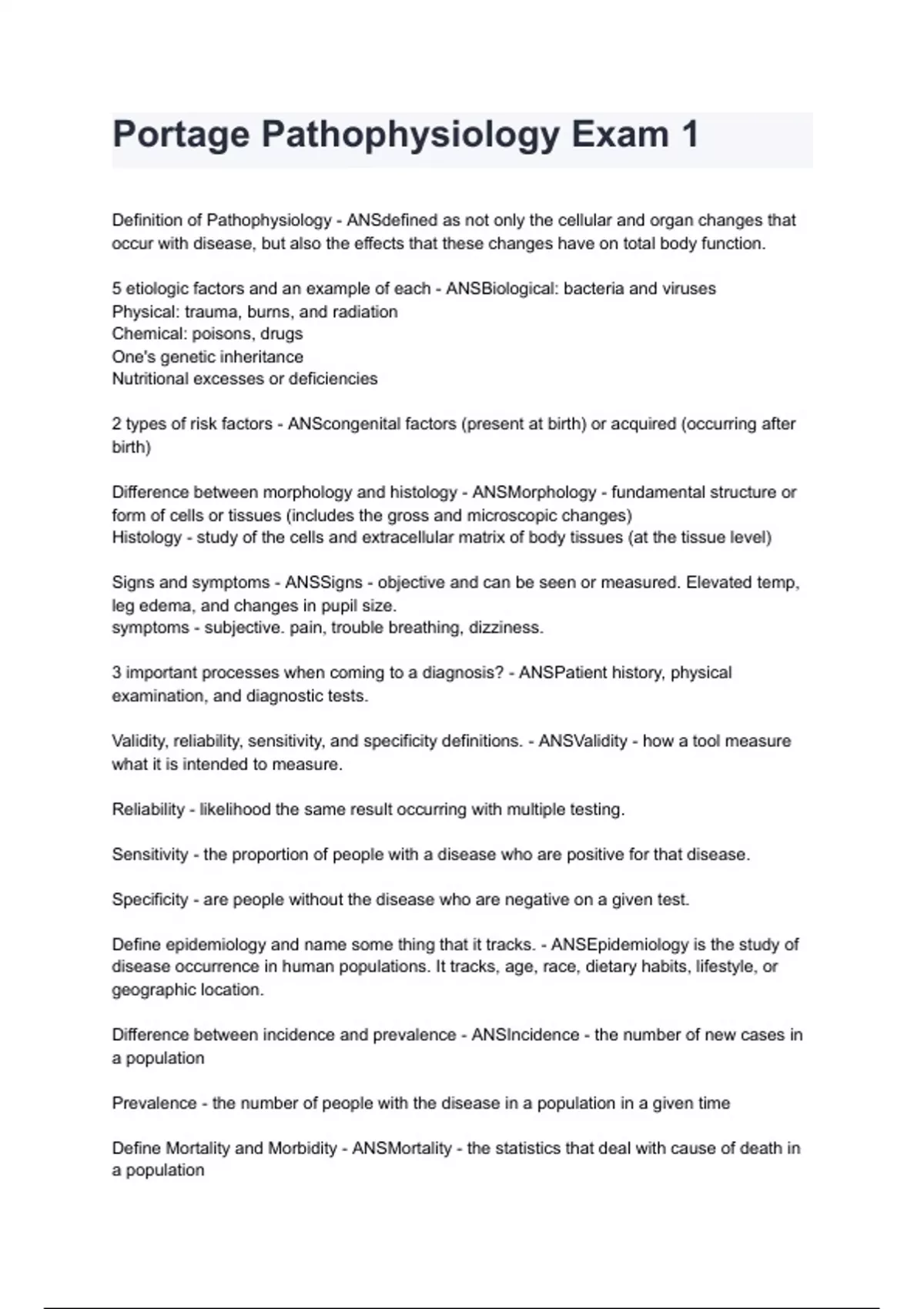Portage Pathophysiology Exam 1