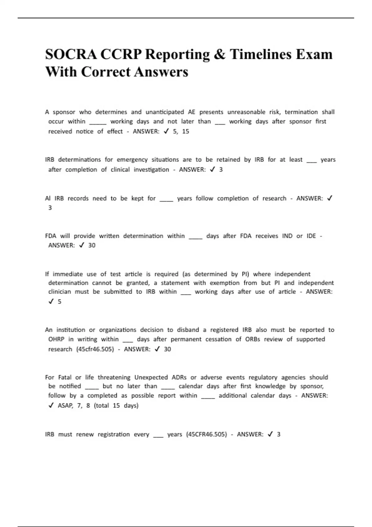 SOCRA CCRP Reporting & Timelines Exam