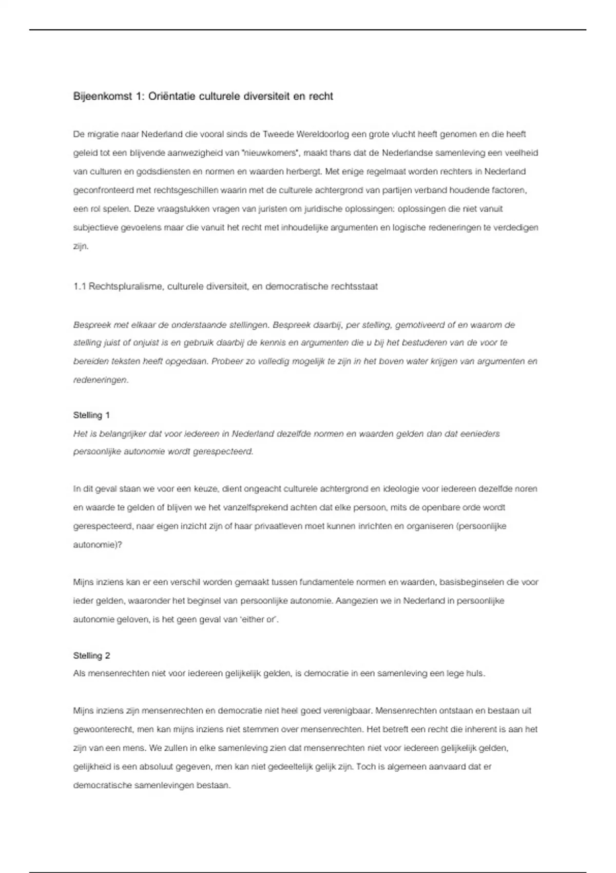 1.1 Rechtspluralisme, culturele diversiteit, en democratische rechtsstaat