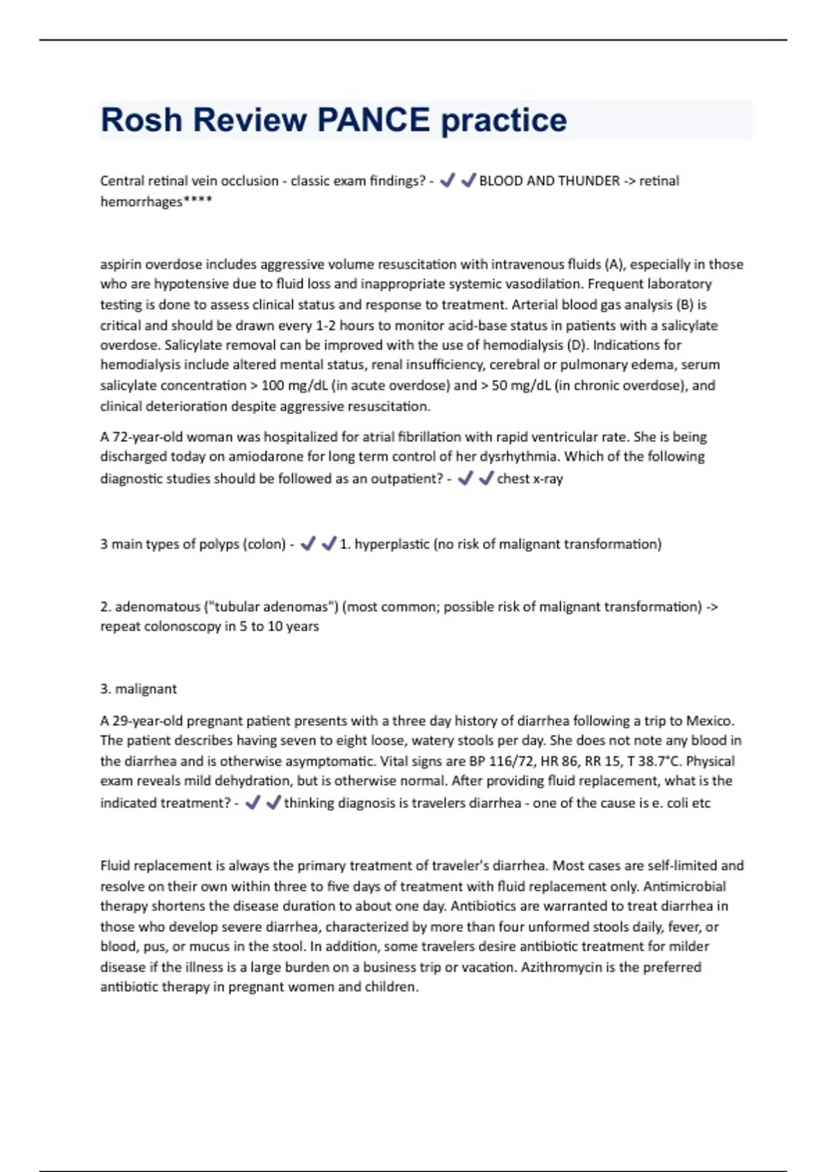 Rosh Review PANCE practice Questions And Answers With 100% Correct Answers