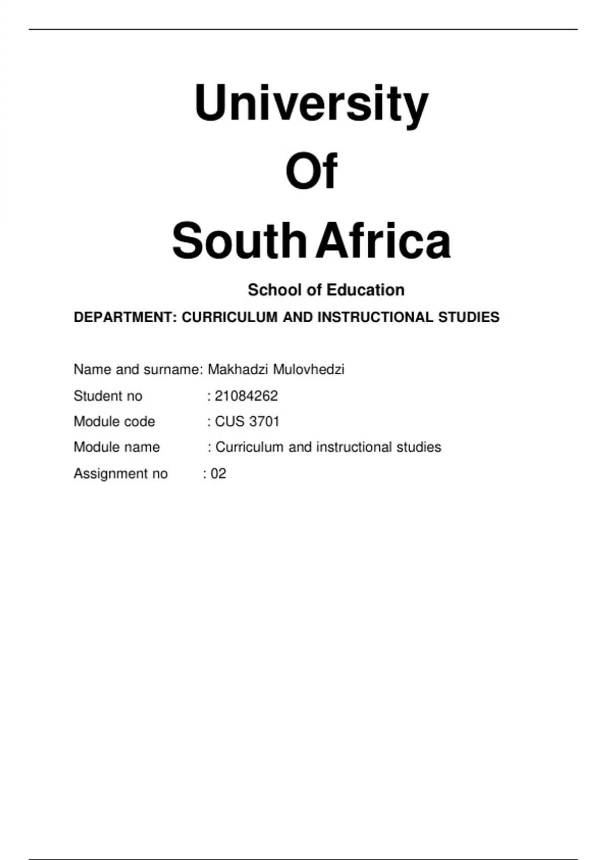 DEPARTMENT: CURRICULUM AND INSTRUCTIONAL STUDIES