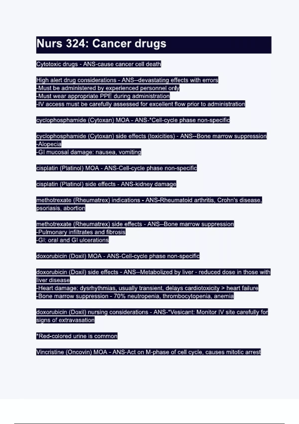 nurs 324cancer drugs