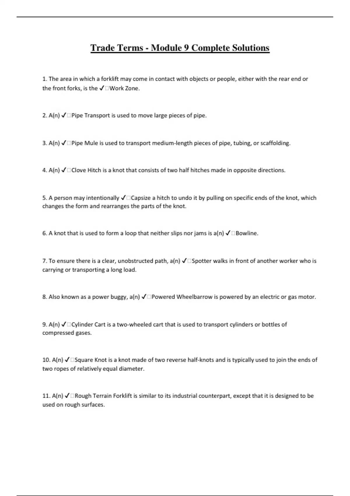 9. A(n) ✔️Cylinder Cart is a two-wheeled cart that is used to transport cylinders or bottles of