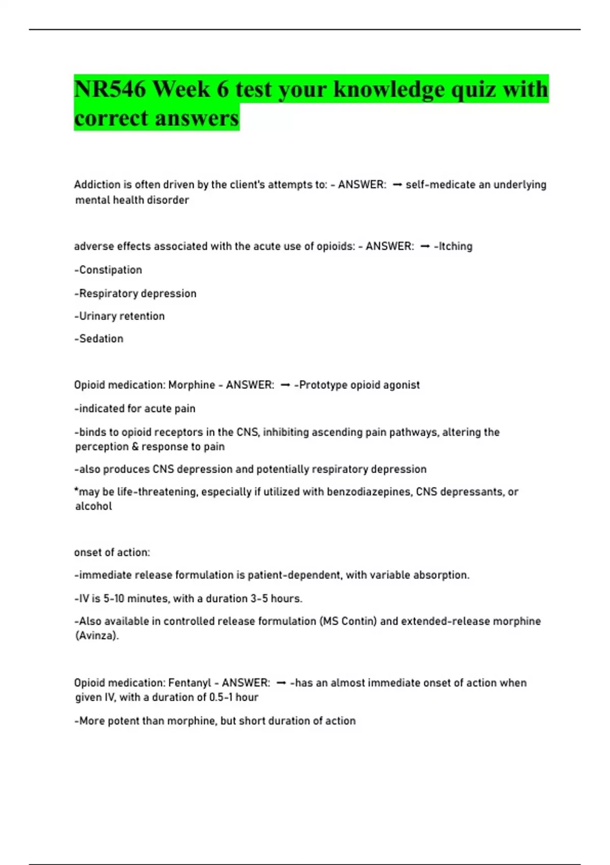 Opioid imedication: iFentanyl i- iANSWER: i i➡ i-has ian ialmost iimmediate ionset iof iaction iwhen