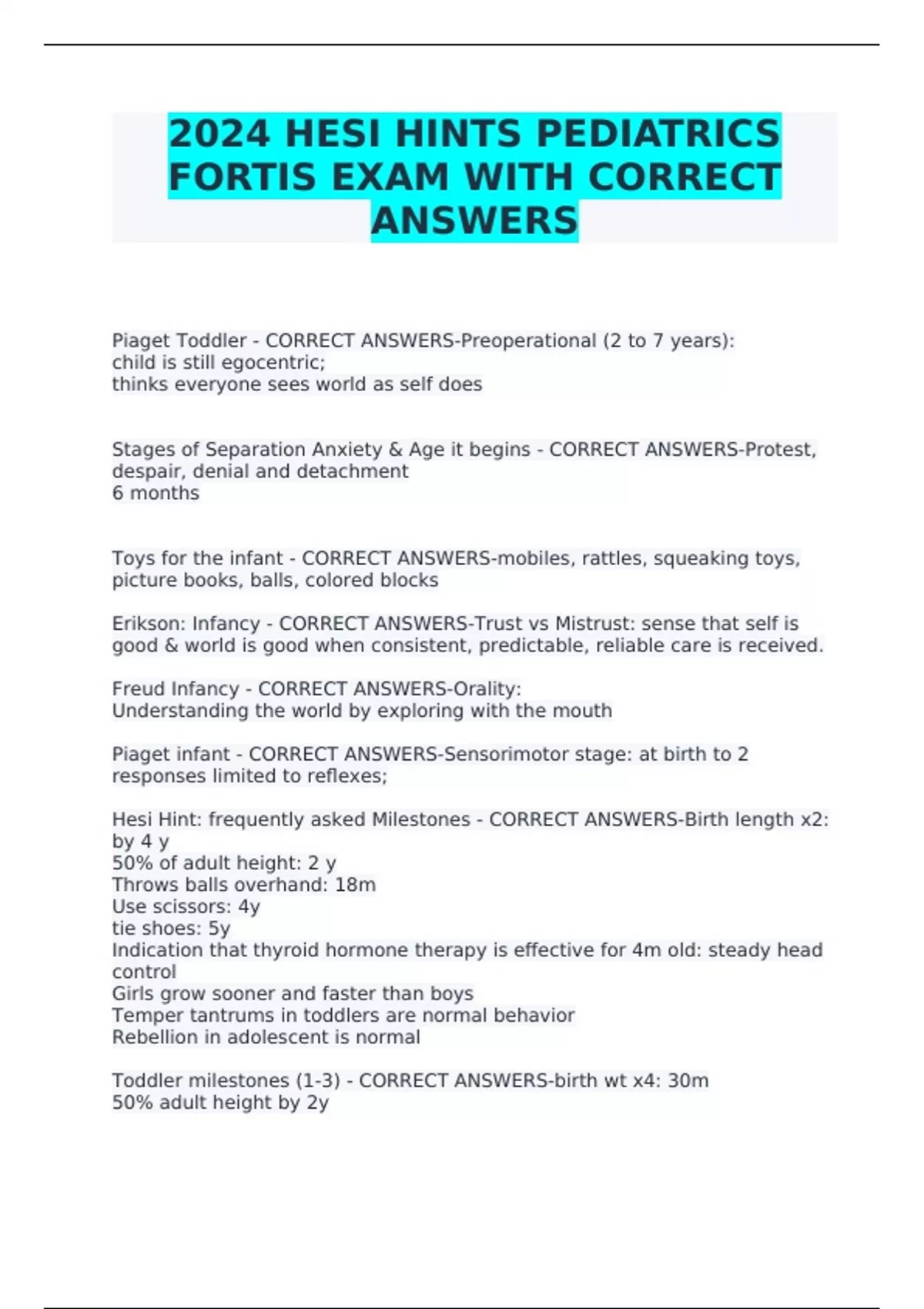 Hesi Hint: frequently asked Milestones - CORRECT ANSWERS-Birth length x2: