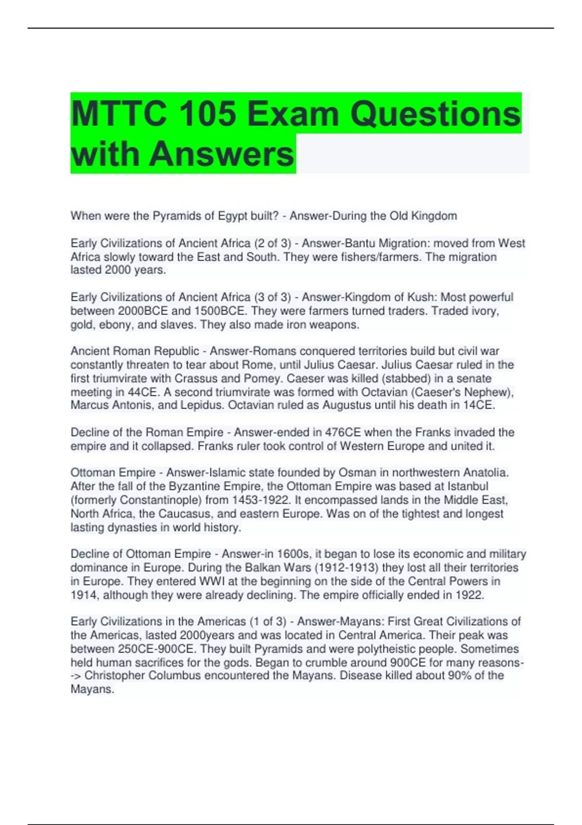 Early Civilizations in the Americas (1 of 3) - Answer-Mayans: First Great Civilizations of
