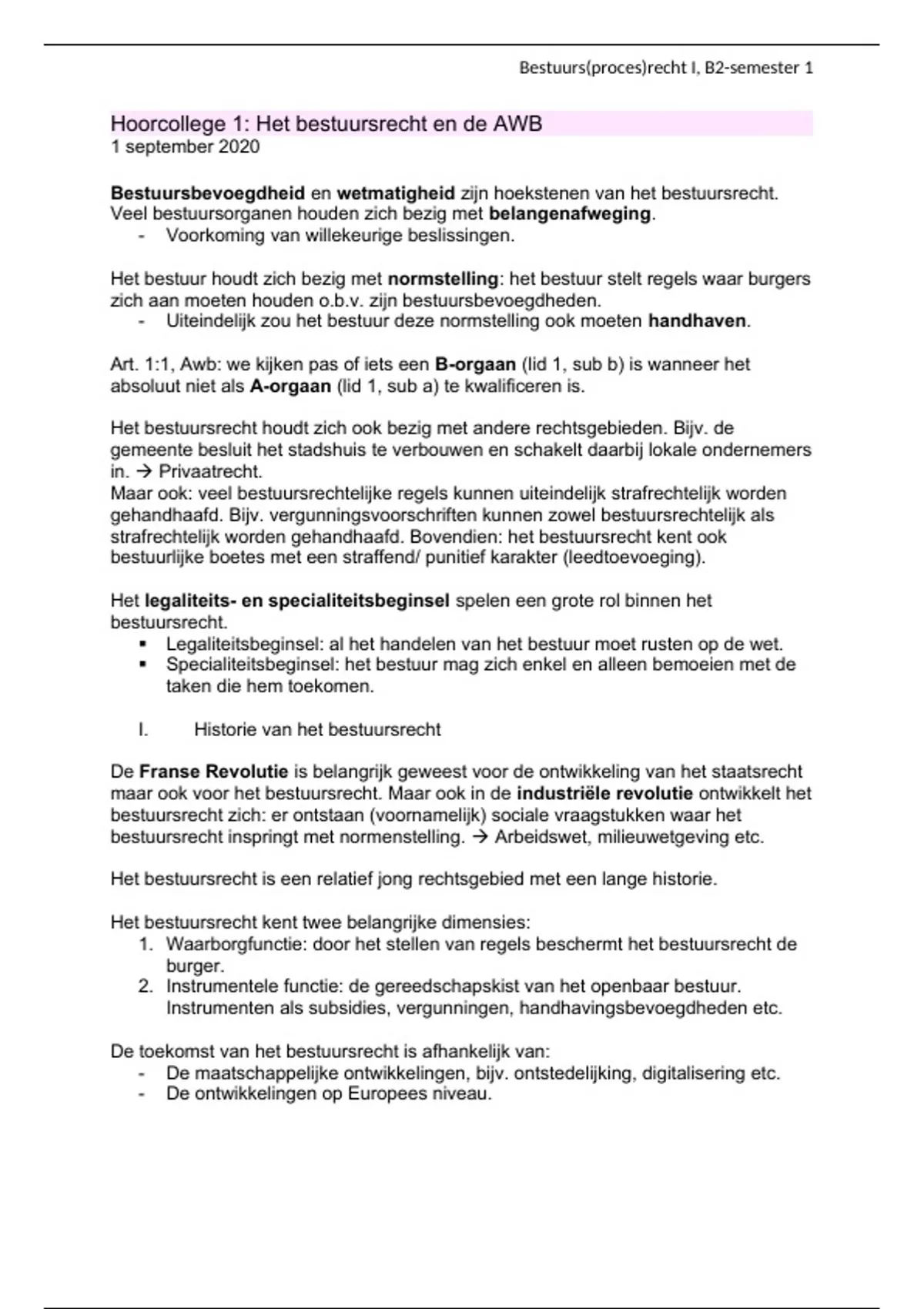 , Bestuurs(proces)recht I, B2-semester 1