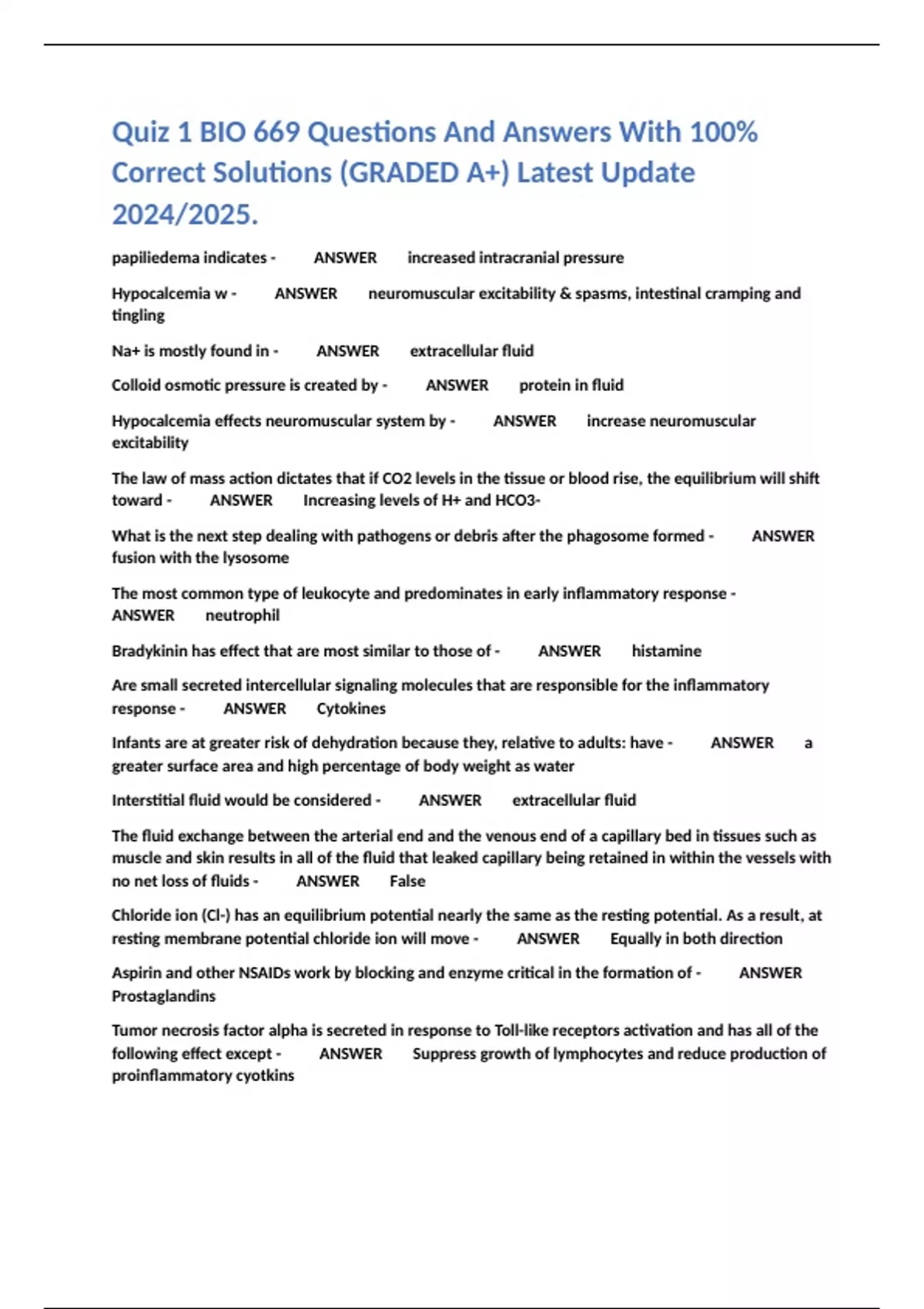Correct Solutions (GRADED A+) Latest Update