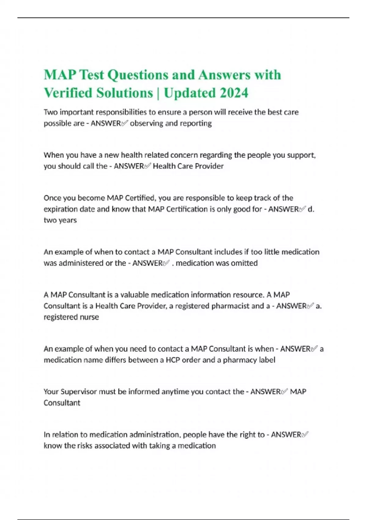 MAP Test Questions and Answers with Verified Solutions | Updated 2024