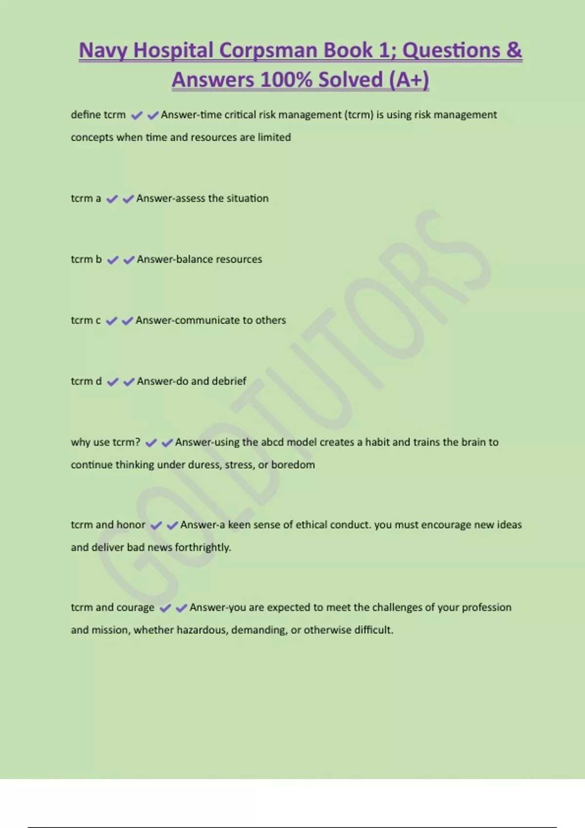 tcrm and courage Answer-you are expected to meet the challenges of your profession