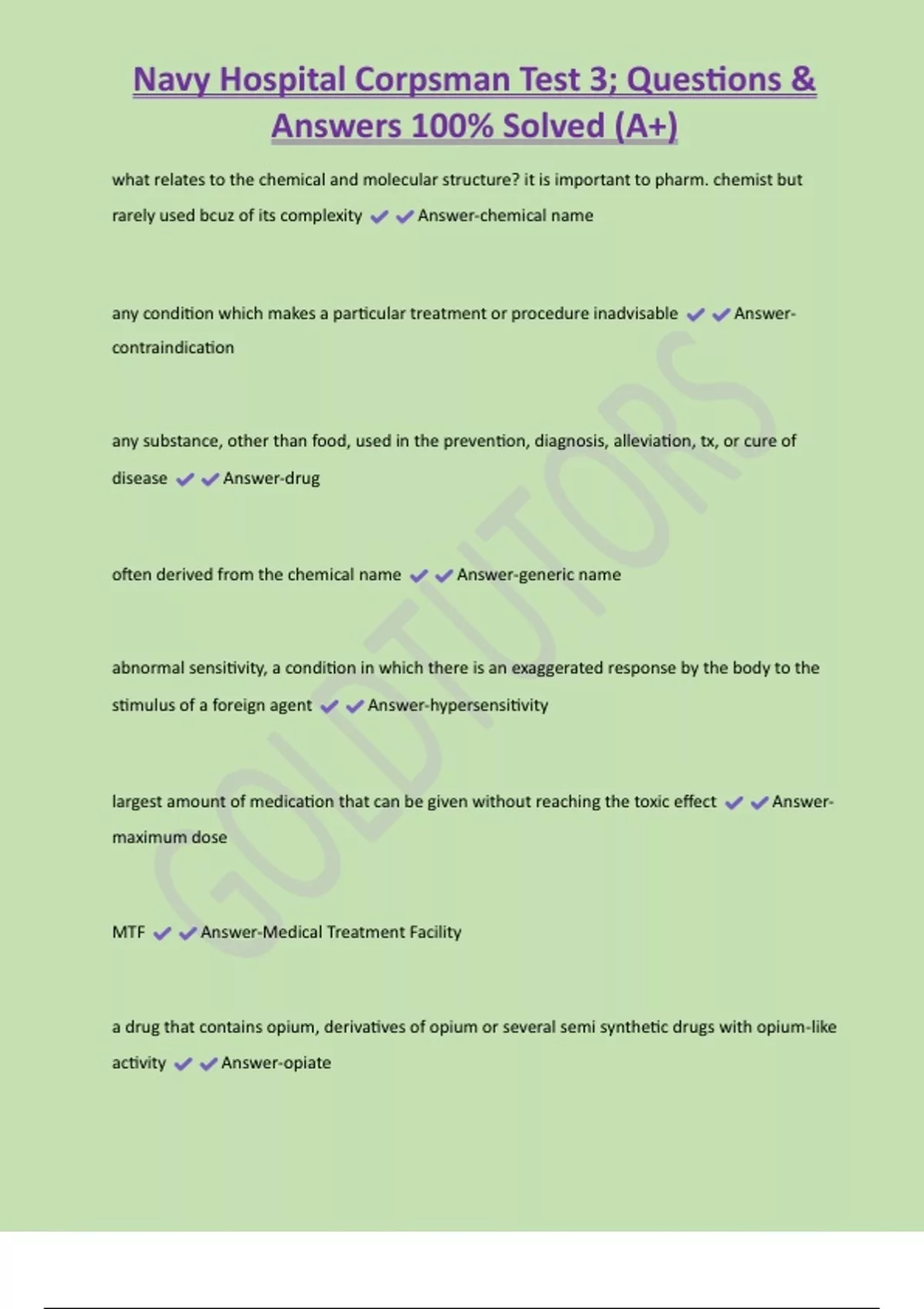 , Navy Hospital Corpsman Test 3; Questions &