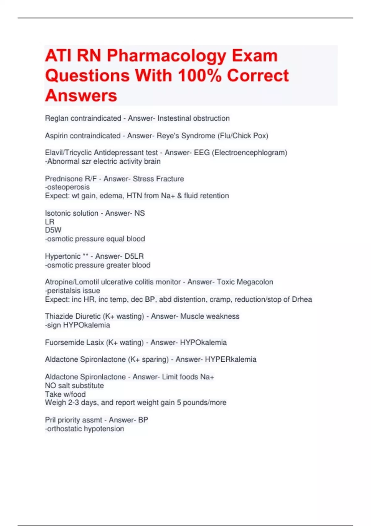 Aldactone Spironlactone - Answer- Limit foods Na+