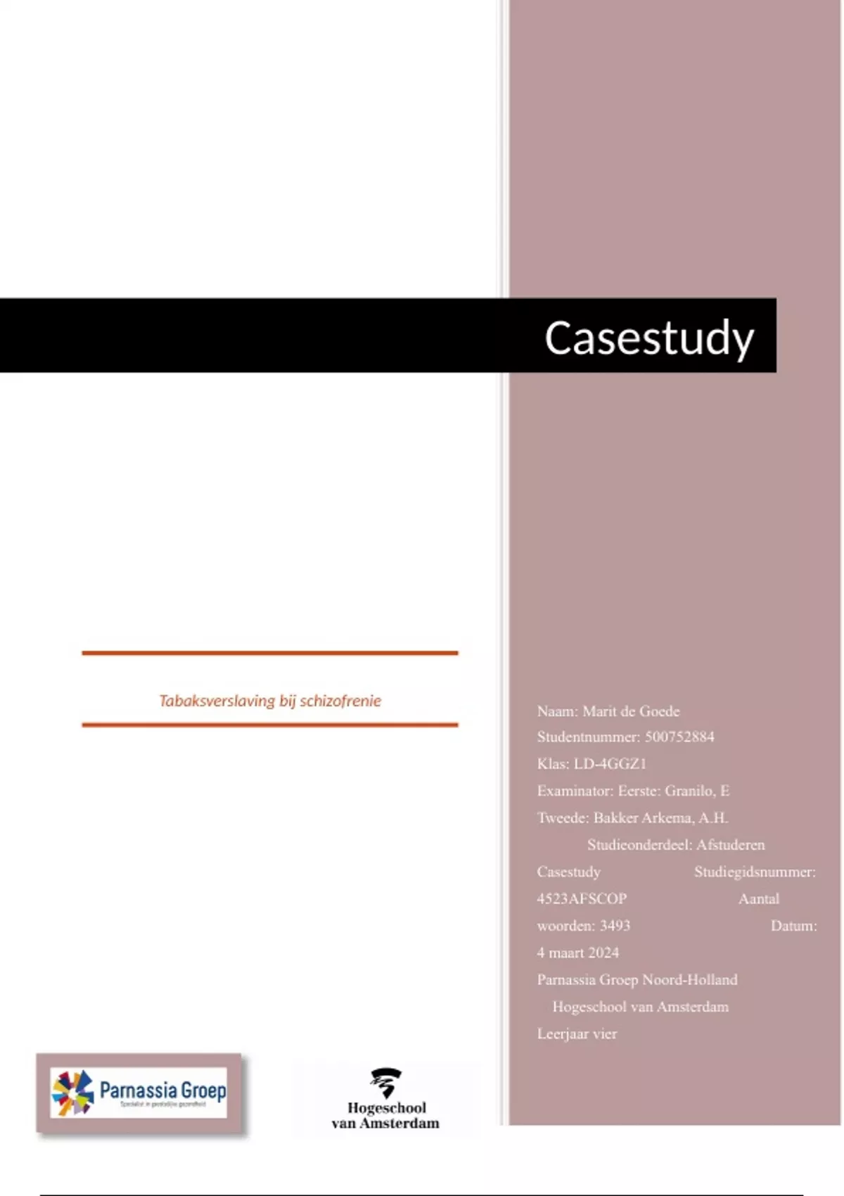 Casestudy Studiegidsnummer: