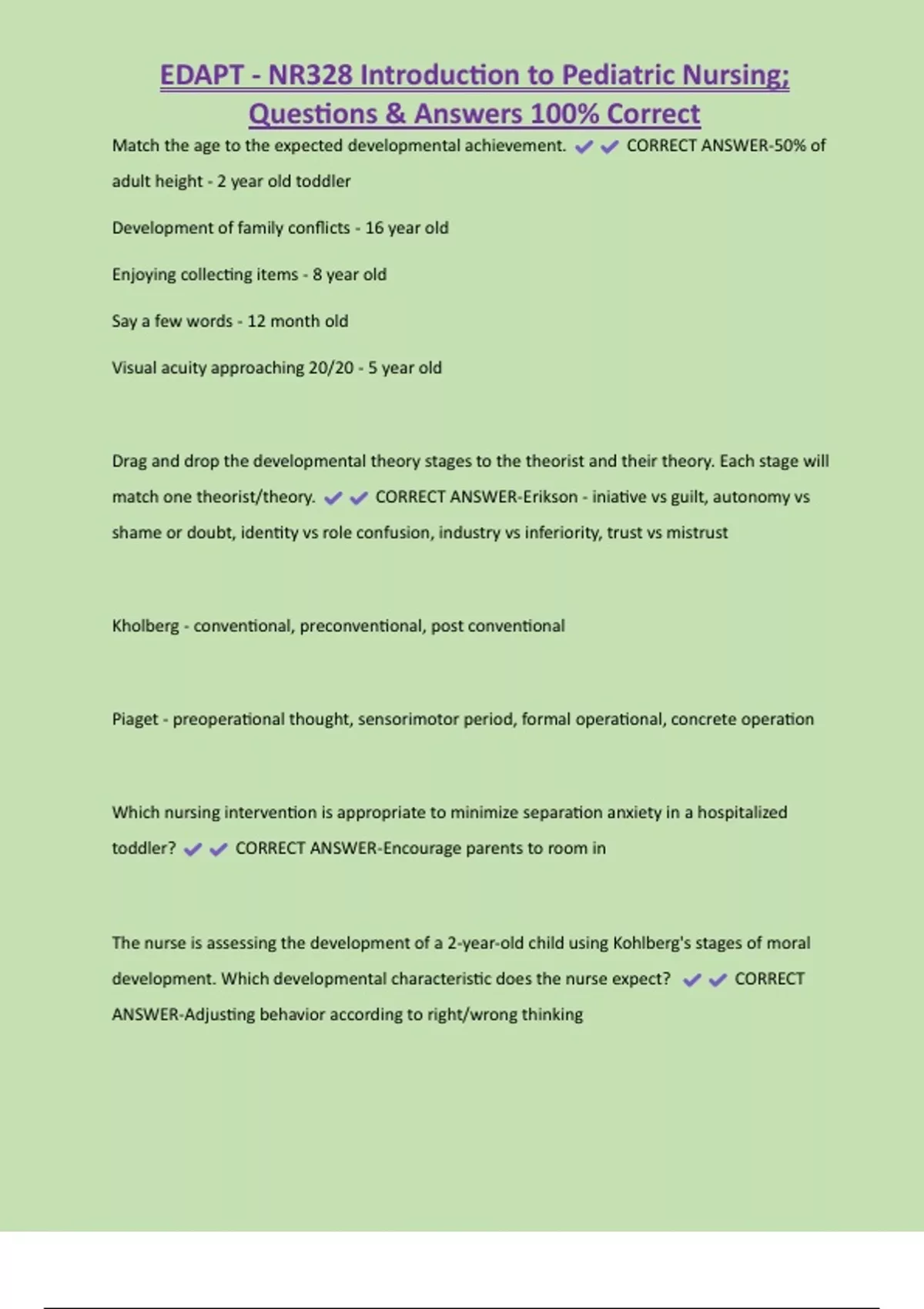 , EDAPT - NR328 Introduction to Pediatric Nursing;