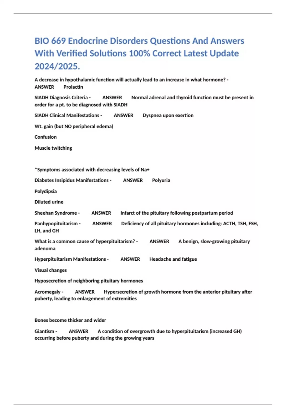 BIO 669 Endocrine Disorders Questions And Answers With Verified Solutions 100% Correct Latest Update 2024/2025.