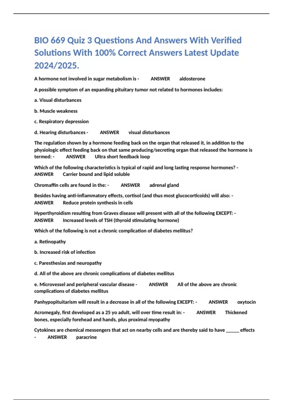 BIO 669 Quiz 3 Questions And Answers With Verified Solutions With 100% Correct Answers Latest Update 2024/2025.