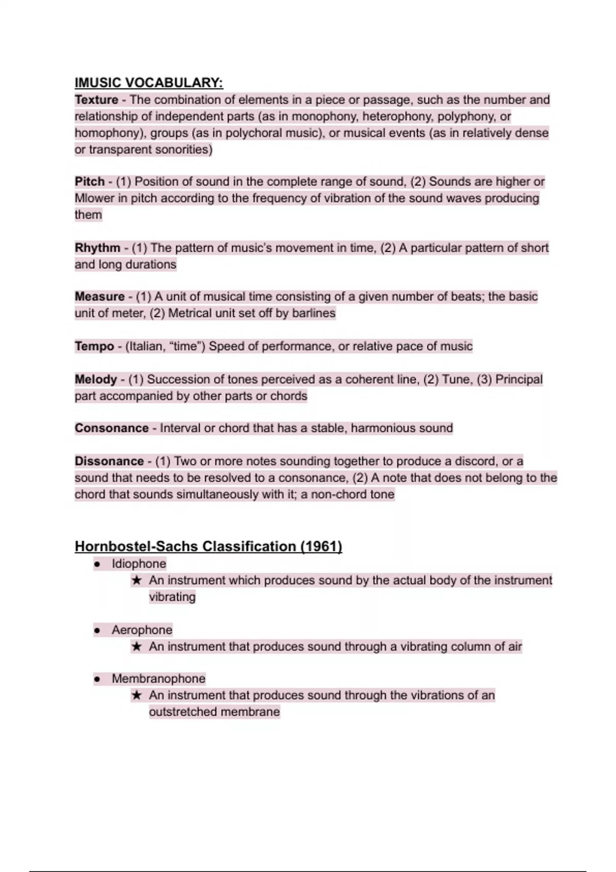 IMUSIC VOCABULARY: