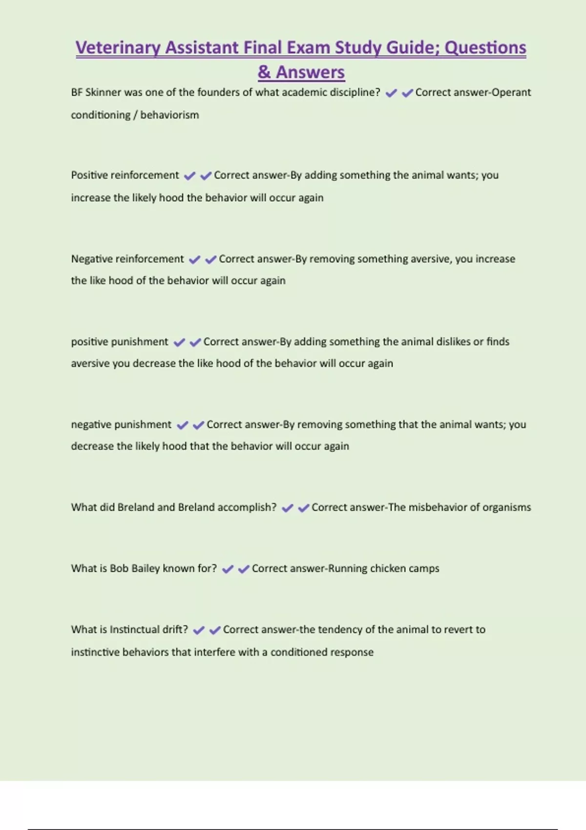 , Veterinary Assistant Final Exam Study Guide; Questions
