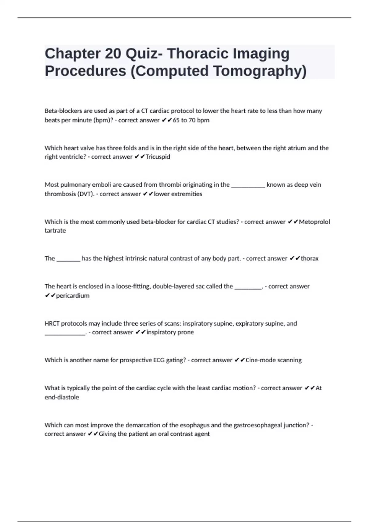 Chapter 20 Quiz- Thoracic Imaging Procedures (Computed Tomography) correctly answered