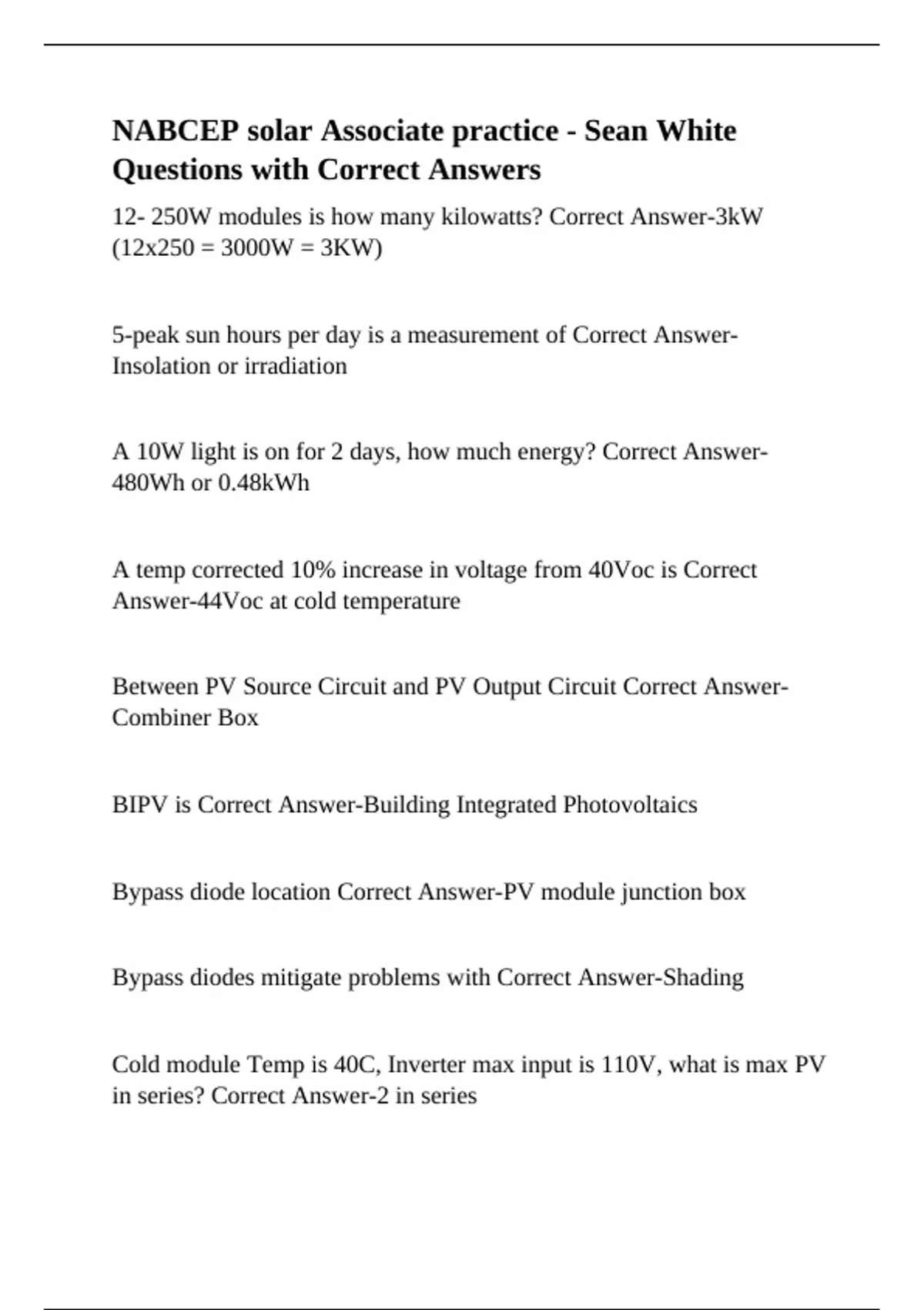 12- 250W modules is how many kilowatts? Correct Answer-3kW