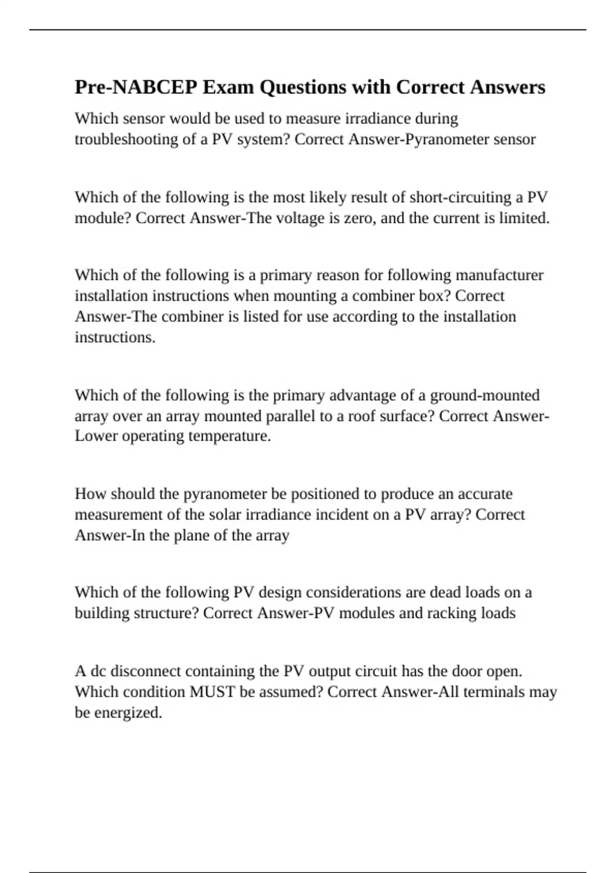 array over an array mounted parallel to a roof surface? Correct Answer-