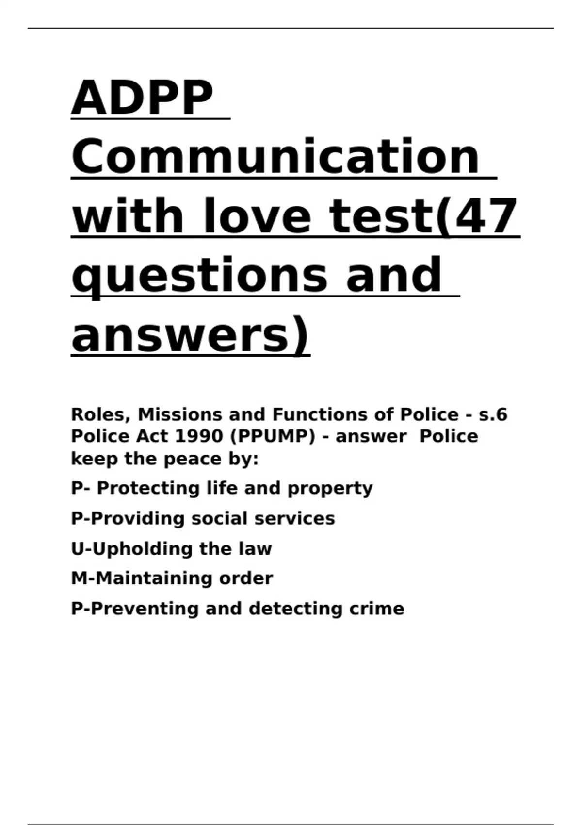Police Act 1990 (PPUMP) - answer Police