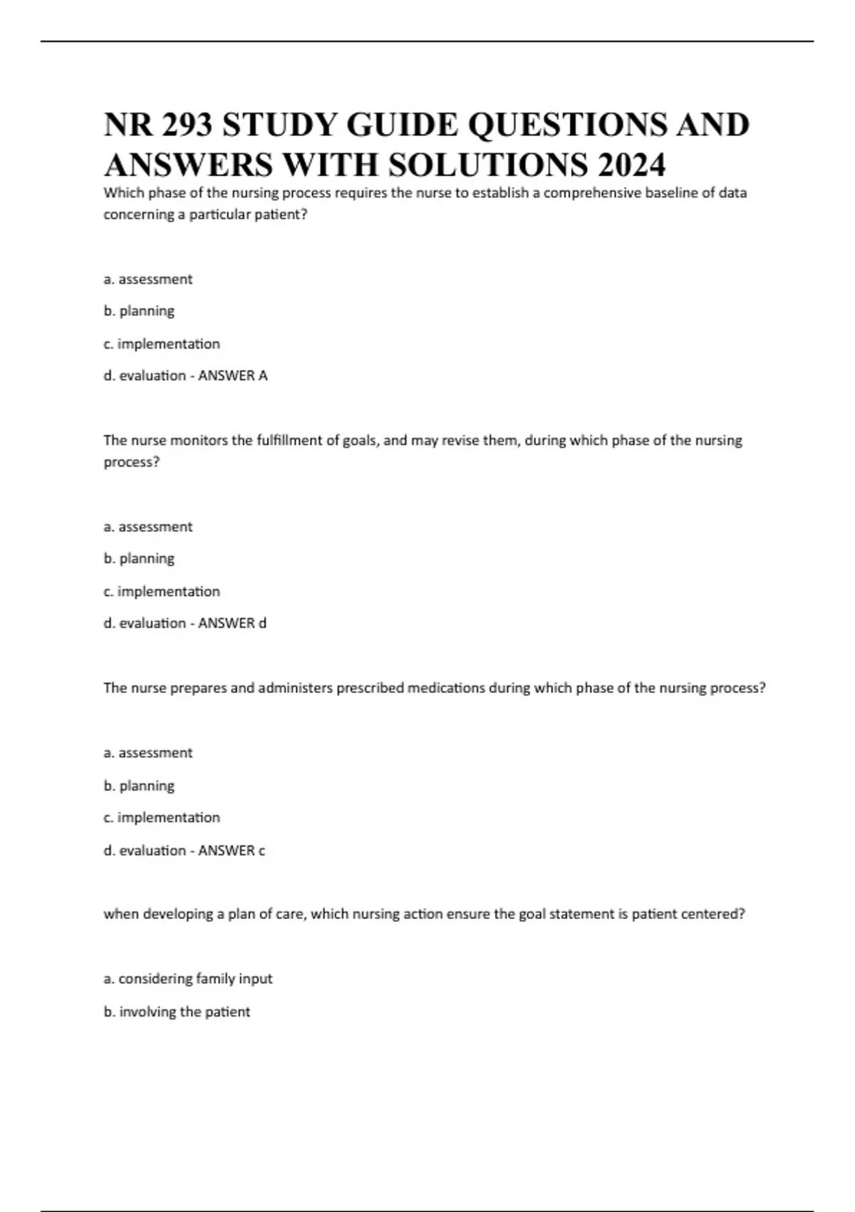 d. evaluation - ANSWER c
