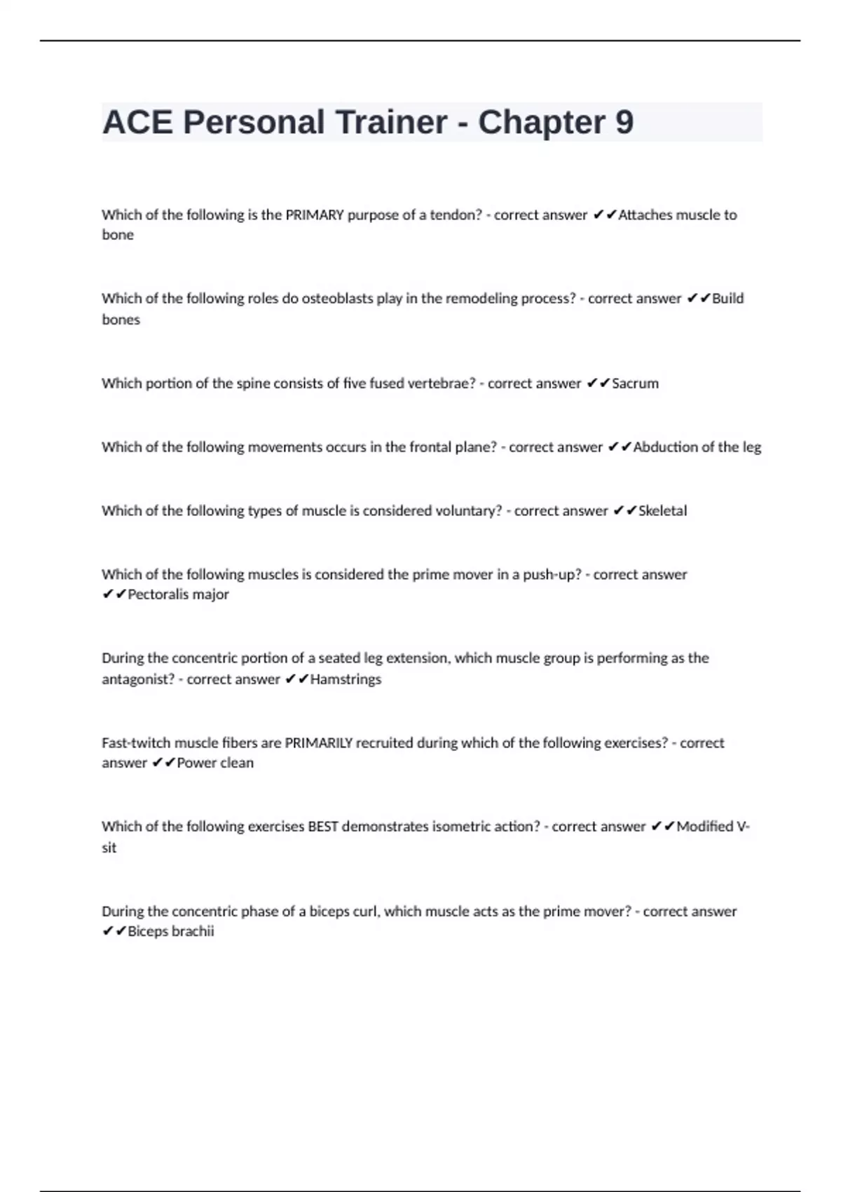 Which of the following is the PRIMARY purpose of a tendon? - correct answer ✔✔Attaches muscle to