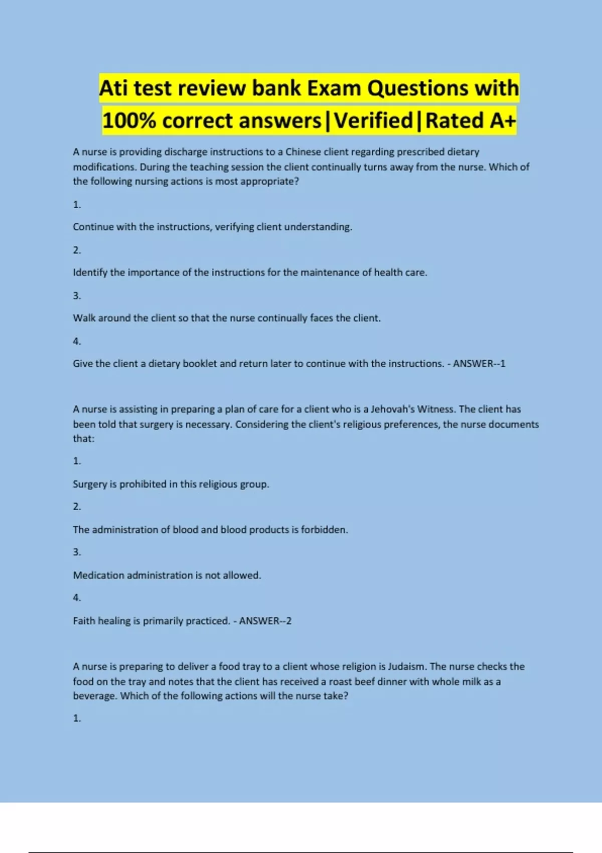 Ati test review bank Exam Questions with 100% correct answers|Verified|Rated A+