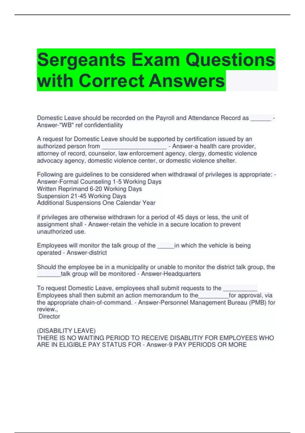 with Correct Answers