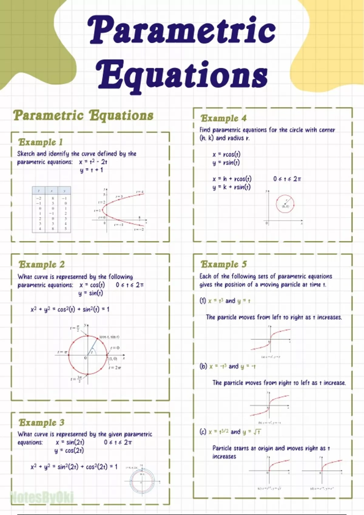 Notes on theme 4: 4.1.1) Parametric equations 4.1.2) Calculus with parametric curves 4.1.3) Polar coordinates 4.1.4) Conic sections 4.2.1) Vector functions and space curves 4.2.2) Derivates of vector functions