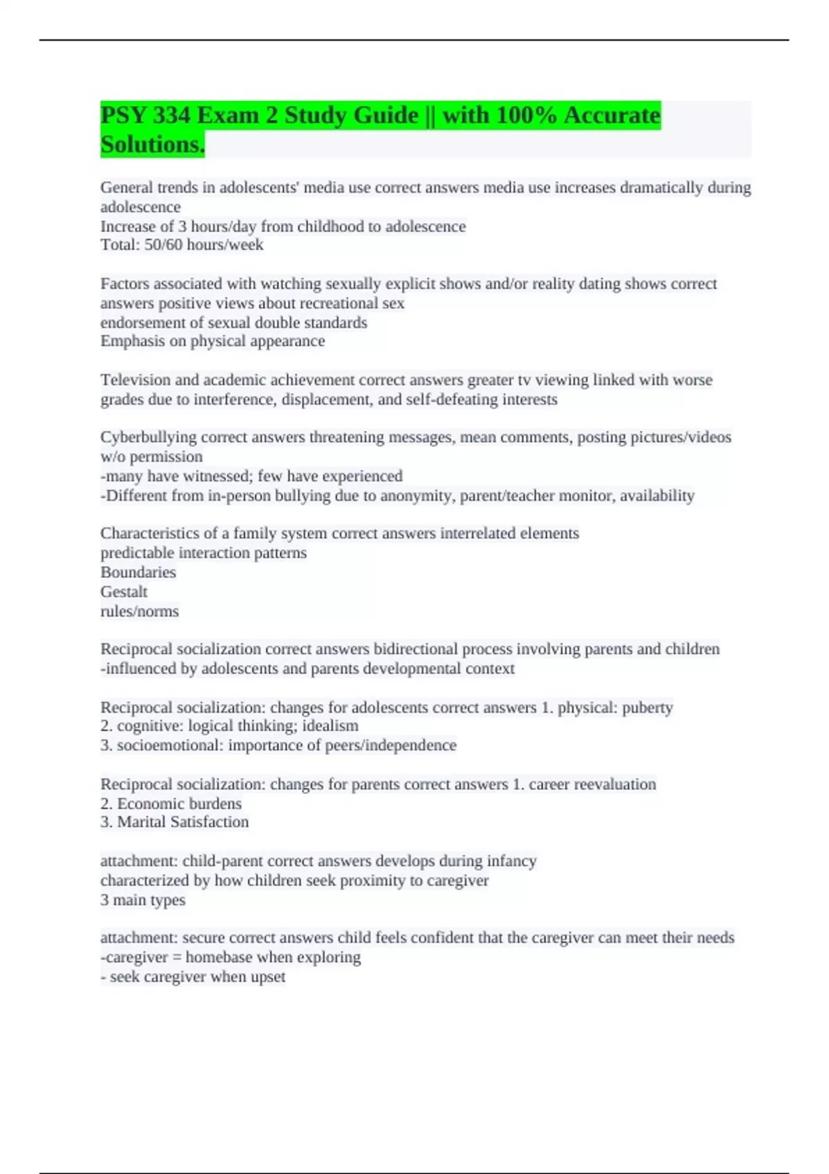 Reciprocal socialization: changes for adolescents correct answers 1. physical: puberty