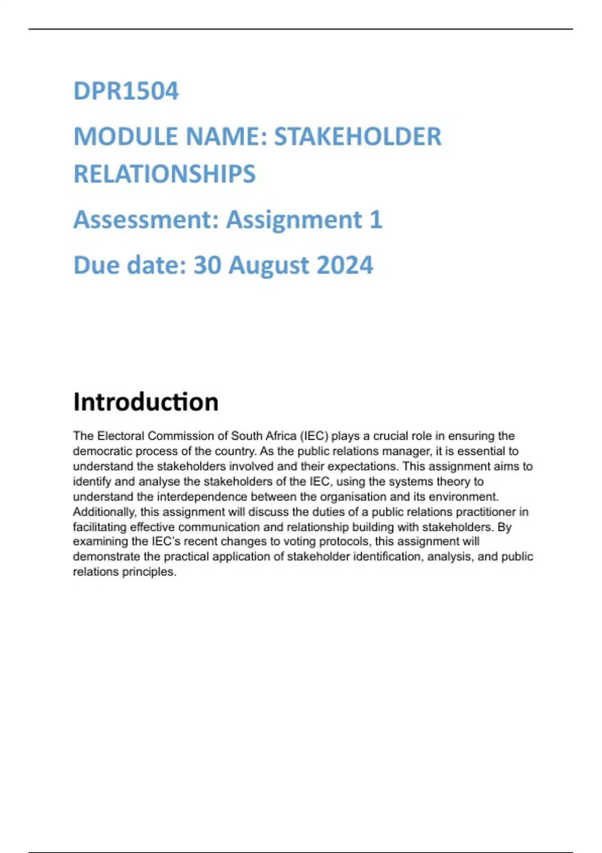 DPR1504_Assigment 01_semester 2_MODULE NAME: STAKEHOLDER RELATIONSHIPS_ Distinction guaranteed _Due date 30 August 2024