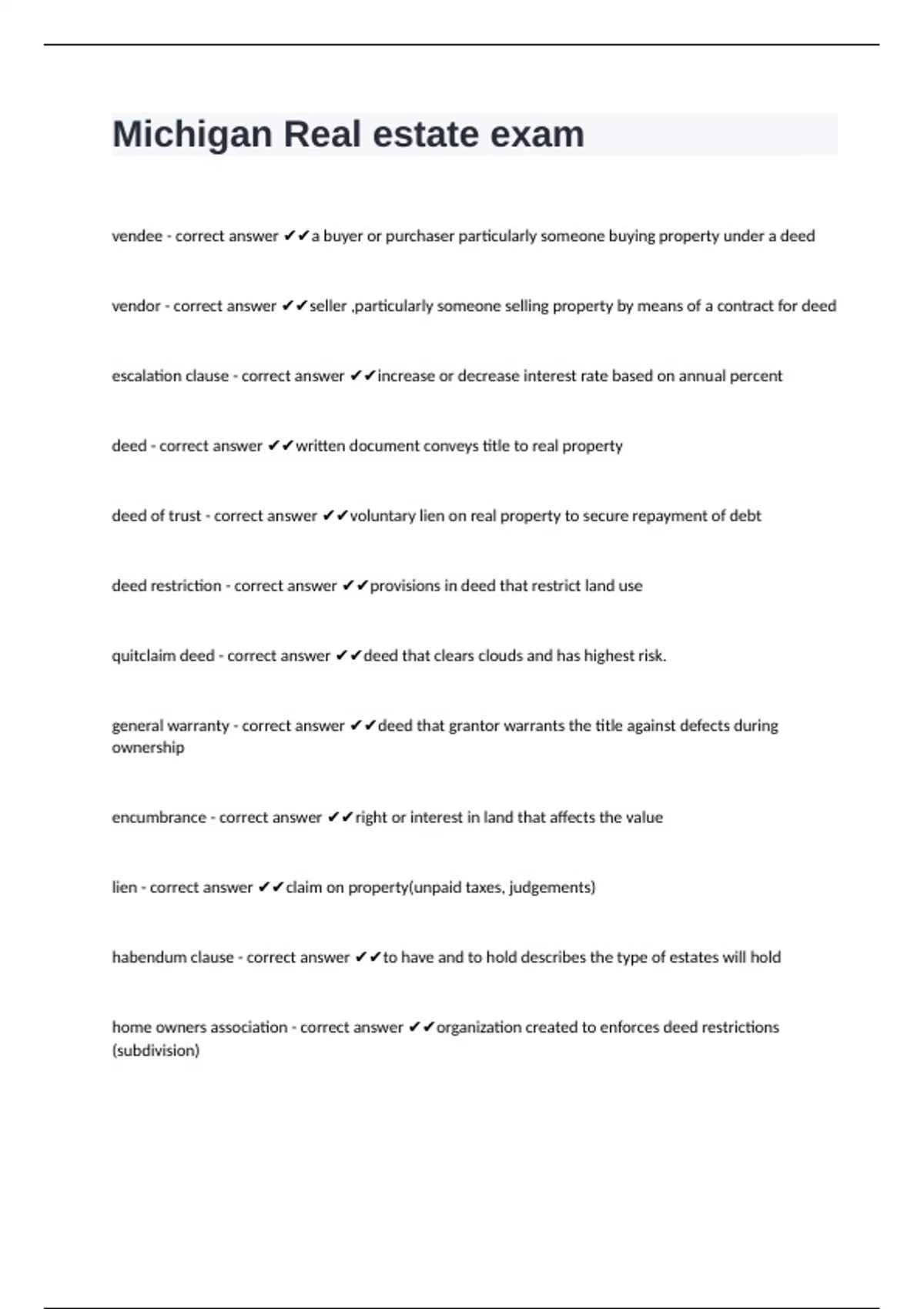 home owners association - correct answer ✔✔organization created to enforces deed restrictions