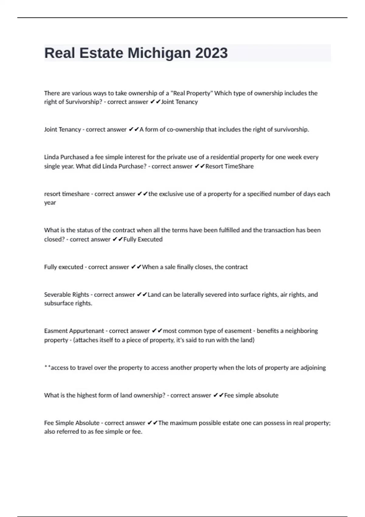 Fee Simple Defeasible - correct answer ✔✔A type of ownership of real property that grants the owner
