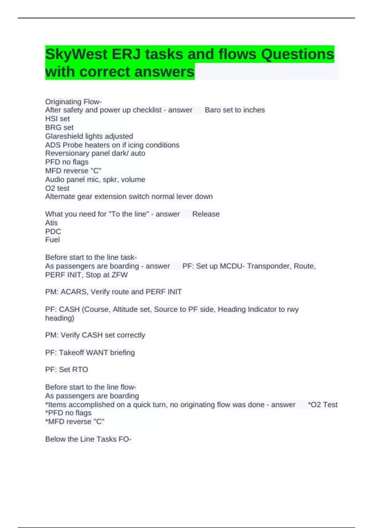 *Items accomplished on a quick turn, no originating flow was done - answer *O2 Test