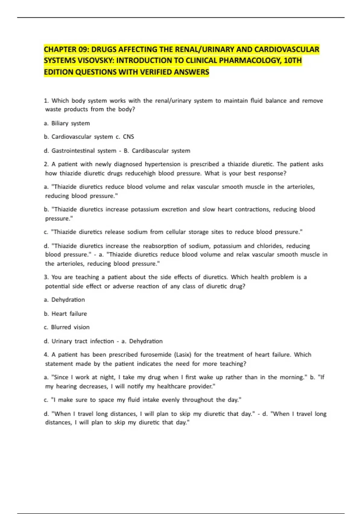 CHAPTER 09: DRUGS AFFECTING THE RENAL/URINARY AND CARDIOVASCULAR
