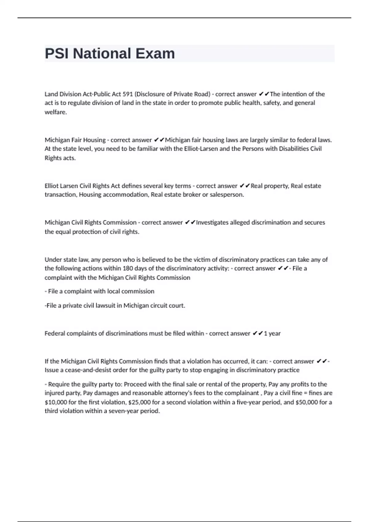 Michigan Civil Rights Commission - correct answer ✔✔Investigates alleged discrimination and secures